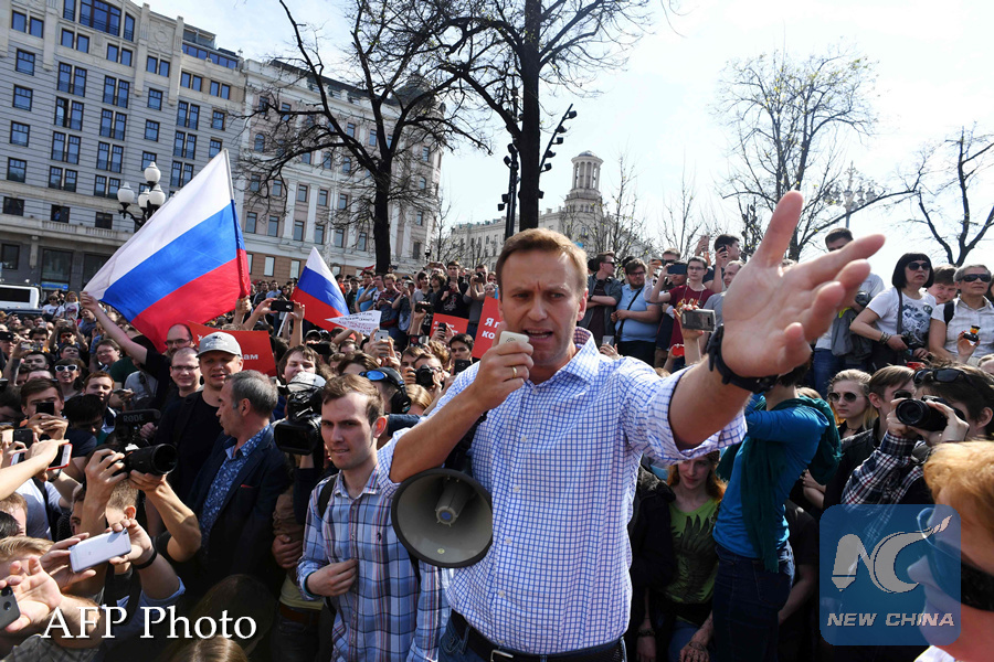 MOSCOW, May 5 (Xinhua) -- Around 300 people, including Russian opposition leader Alexey Navalny, were detained during an unauthorized rally in central Moscow, Moscow City Police said Saturday.