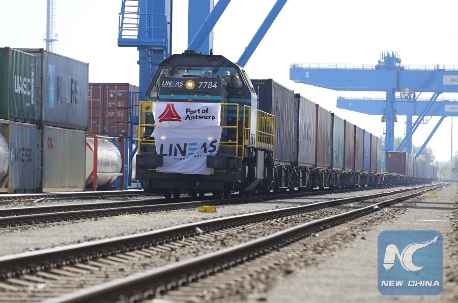 The train with 41 containers which left Tangshan on April 26, was officially welcomed on Saturday in Antwerp. The direct railway link between China and Belgium is part of the China-proposed Belt and Road Initiative.