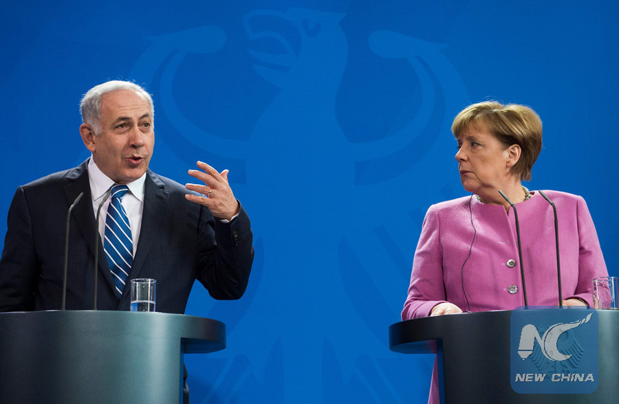 In this file photo taken on February 16, 2016, German Chancellor Angela Merkel (R) and Israel's Prime Minister Benjamin Netanyahu speak at a press conference at the Chancellery in Berlin after a sixth joint German-Israeli cabinet meeting. (AFP photo)