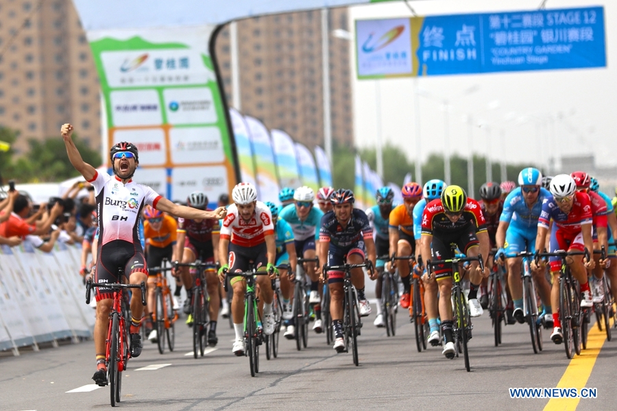 Spanish rider Daniel Lopez wins the twelfth stage of the Tour of Qinghai Lake in Yinchuan, northwest China's Ningxia Hui Autonomous Region, on August 3, 2018. (Photo by Song Zhongyong)