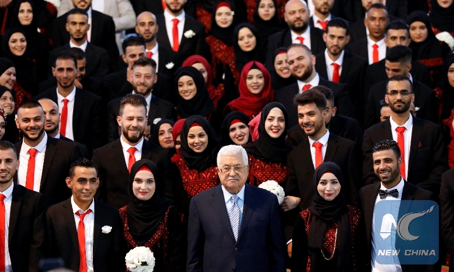 GAZA, Oct. 2 (Xinhua) -- A total of 360 brides and grooms were overwhelmed with joy on Tuesday during a mass wedding ceremony, sponsored by Palestinian President Mahmoud Abbas.