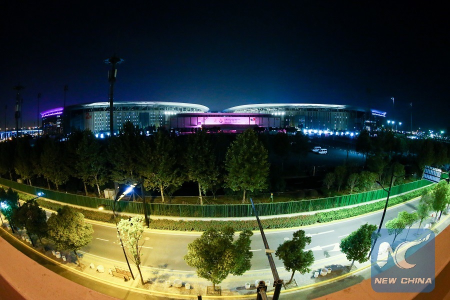 Photo taken on Oct. 12, 2018 shows the National Exhibition and Convention Center (Shanghai), main venue of the upcoming China International Import Expo (CIIE), in Shanghai, east China. (Xinhua/Ding Ting)