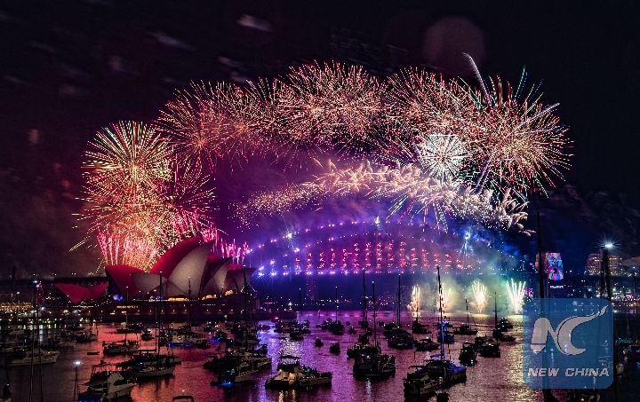 Fireworks explode over the Sydney Harbour to celebrate the New Year in Sydney, Australia, Jan. 1, 2019. (Xinhua/Zhu Hongye)
