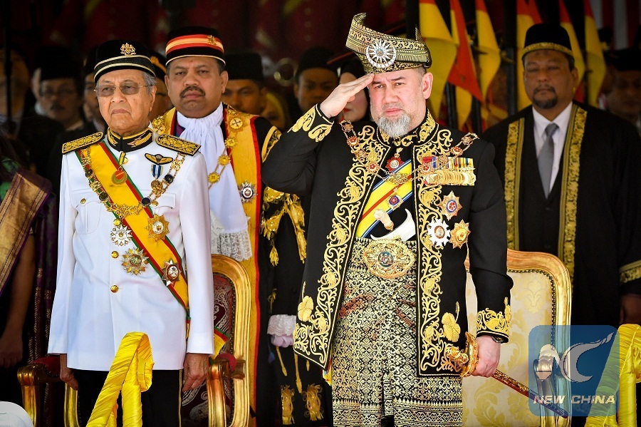 File photo taken on July 17, 2018 shows Malaysia's King Sultan Muhammad V (R, front) reviewing the royal guard of honour during the opening ceremony of the parliament in Kuala Lumpur,Malaysia. (Xinhua/Chong Voon Chung)