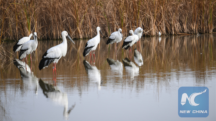 Wild birds are seen at the Yancheng Wetland and Rare Birds National Nature Reserve in east China's Jiangsu Province, Nov. 15, 2017. (Xinhua/Ji Chunpeng)