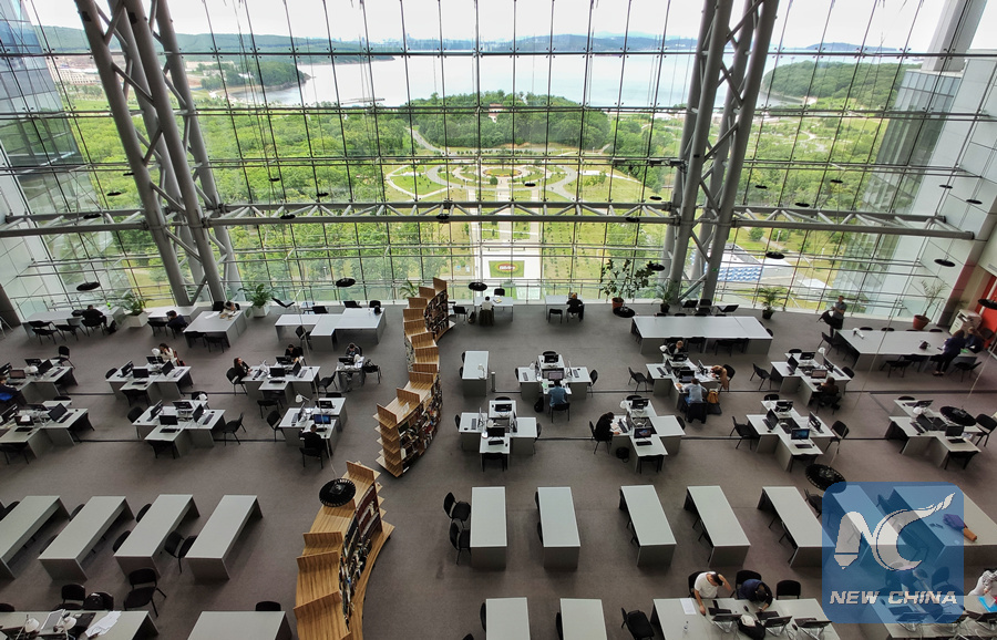 The libruary of Russia's Far Eastern Federal University located in the port city of Vladivostok is pictured on July 11, 2019. (Xinhua/Shi Hao)