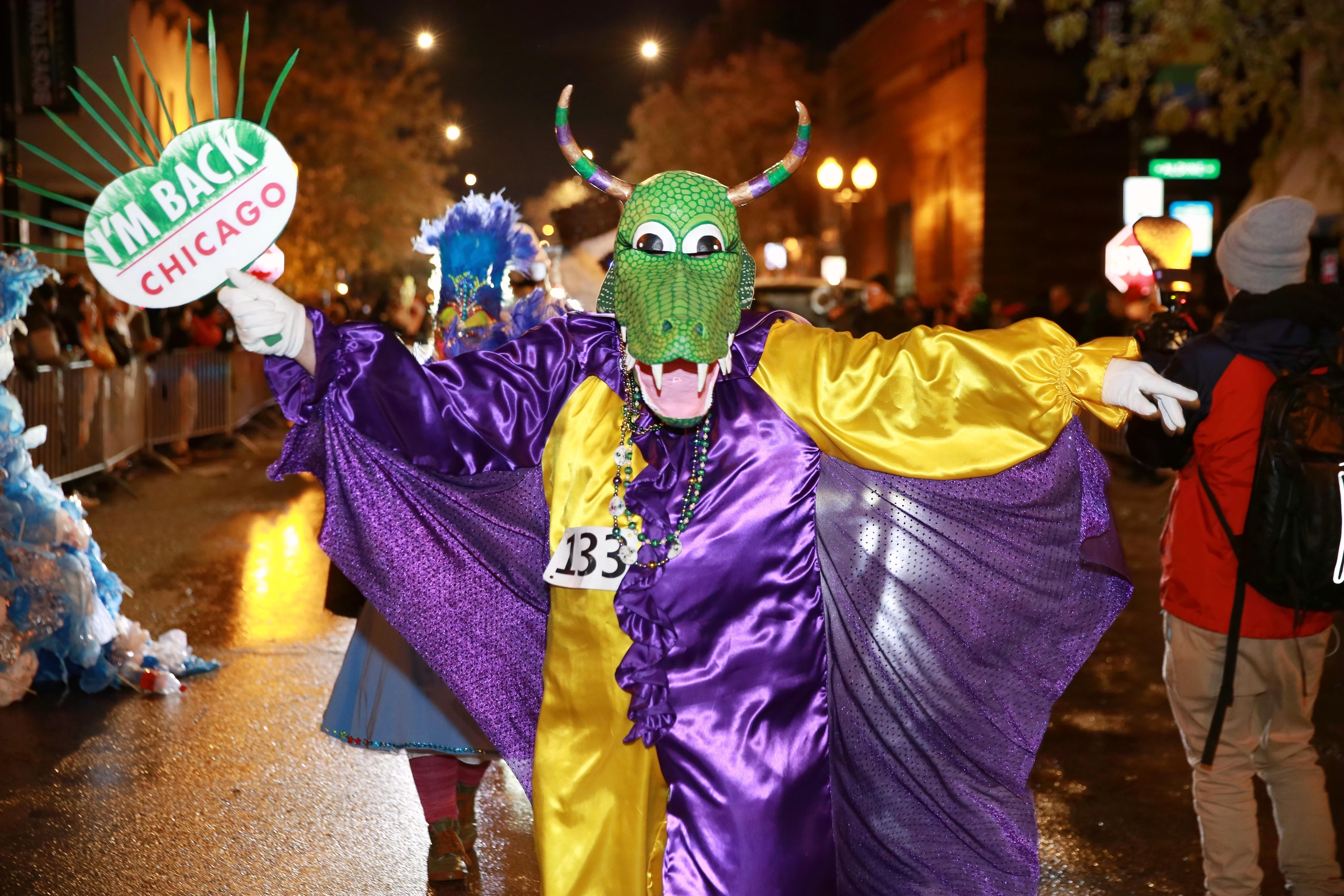 People dressed in Halloween costumes attend the annual Halloween Parade in Chicago, the United States, on Oct. 31, 2019. (Xinhua/Wang Ping)