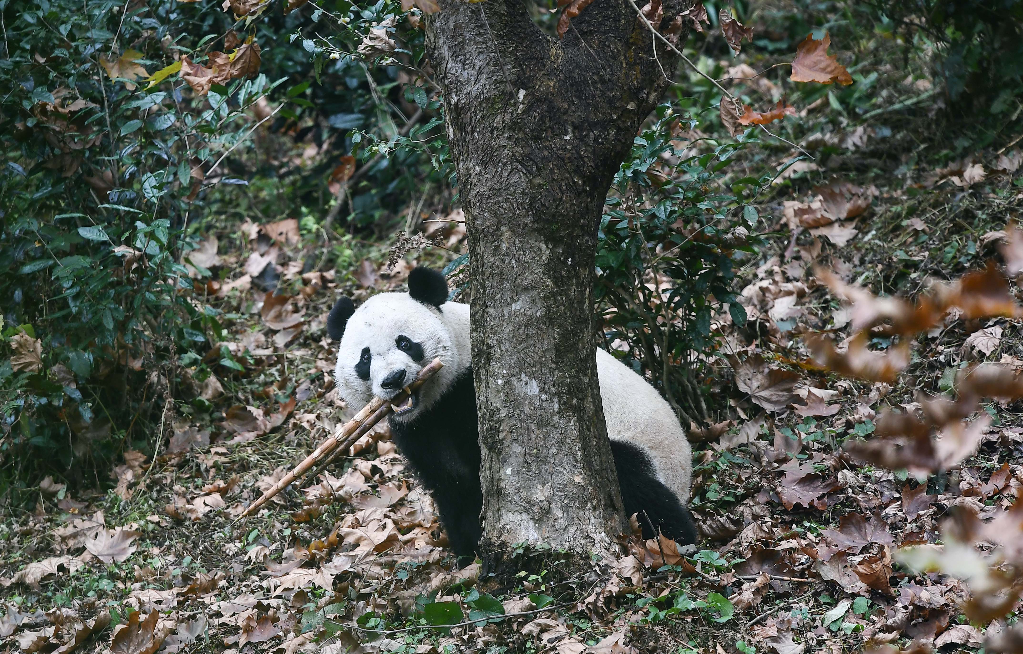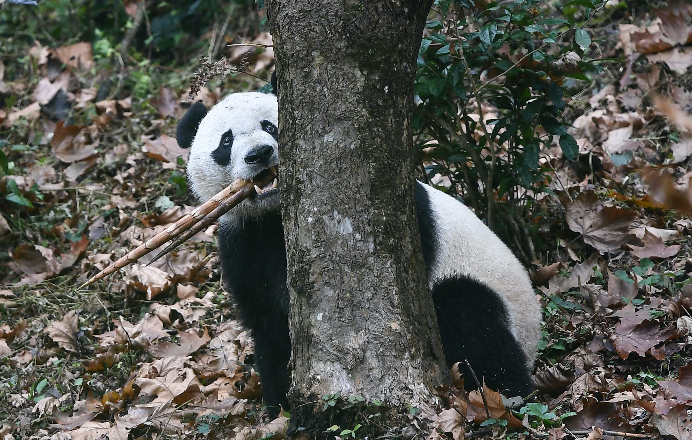 U.S.-born male giant panda Bei Bei is seen after his return from the United States at the Bifengxia Panda Base of the China Conservation and Research Center for the Giant Panda in Ya'an, southwest China's Sichuan Province, Nov. 21, 2019. (Xinhua/Xue Yubin)