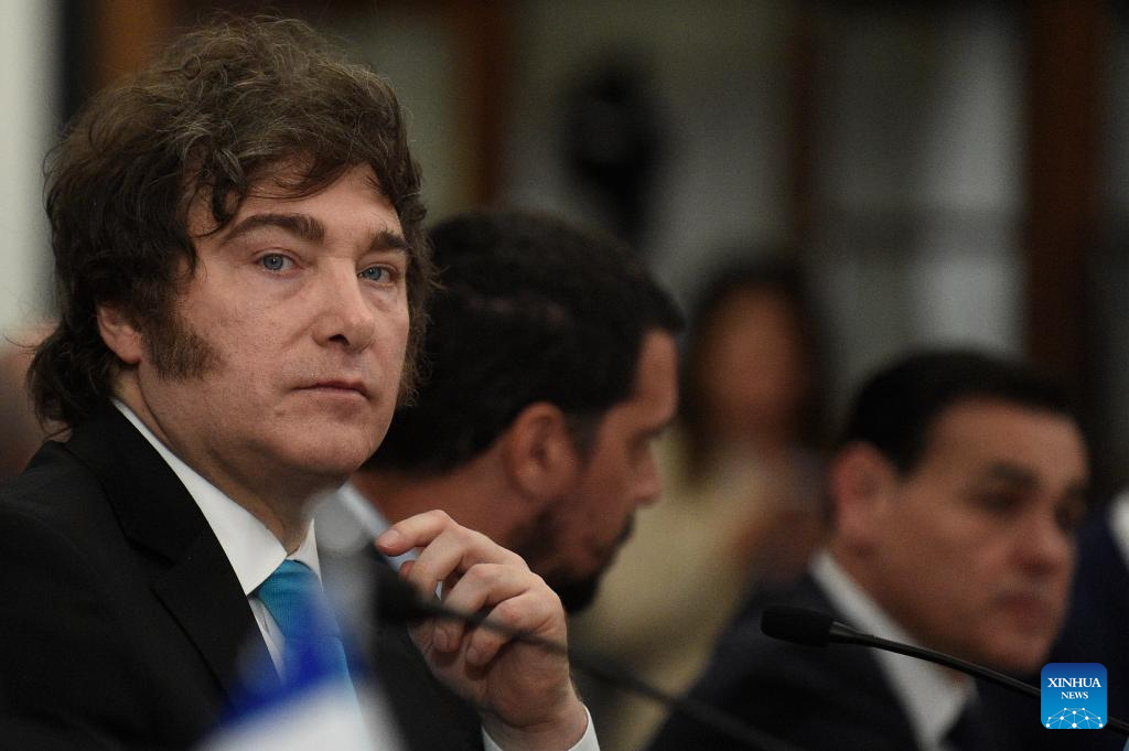 Argentine President Javier Milei (1st L) attends the 67th Summit of the Heads of State of the Southern Common Market (Mercosur) in Foz do Iguacu, Brazil, on Dec. 20, 2025. The 67th Summit of the Heads of State of the Mercosur was held here on Saturday. (Photo by Lucio Tavora/Xinhua)