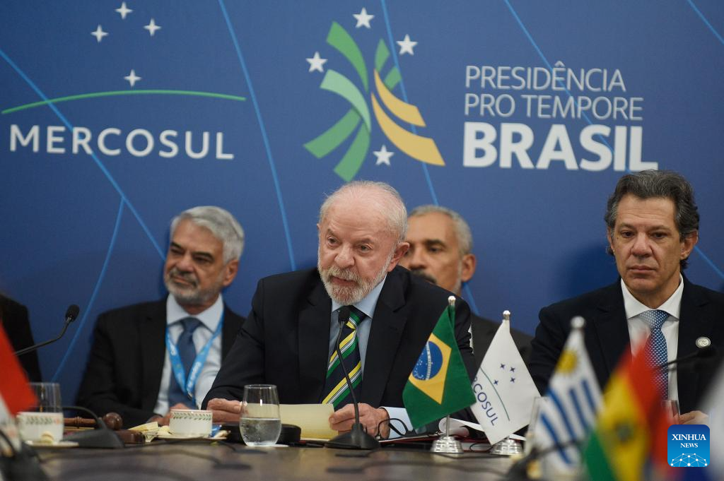 Brazilian President Luiz Inacio Lula da Silva speaks during the 67th Summit of the Heads of State of the Southern Common Market (Mercosur) in Foz do Iguacu, Brazil, on Dec. 20, 2025. The 67th Summit of the Heads of State of the Mercosur was held here on Saturday. (Photo by Lucio Tavora/Xinhua)