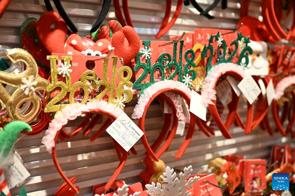 YIWU, Zhejiang, Dec. 24 (Xinhua) -- While shoppers worldwide are still on the hunt for last-minute gifts, the real pulse of the global Christmas economy is beating strong in east China's Yiwu, the renowned "world's supermarket."