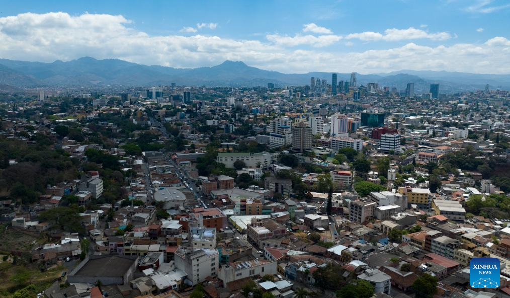An aerial drone file photo taken on March 21, 2024 shows a city view of Tegucigalpa, capital of Honduras. Honduras' National Electoral Council (CNE) said Wednesday that National Party candidate Nasry Asfura was elected the country's constitutional president in the general elections held on Nov. 30. (Xinhua/Li Mengxin)