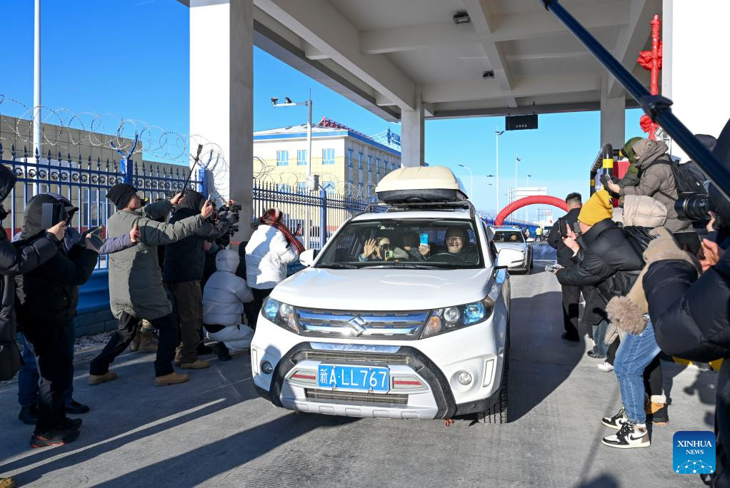 Media staff take photos of vehicles passing a toll station for the Urumqi-Yuli Expressway in Urumqi County, northwest China's Xinjiang Uygur Autonomous Region, Dec. 26, 2025. The 22.13-km Tianshan Shengli Tunnel, the world's longest expressway tunnel, officially opened to traffic on Friday.