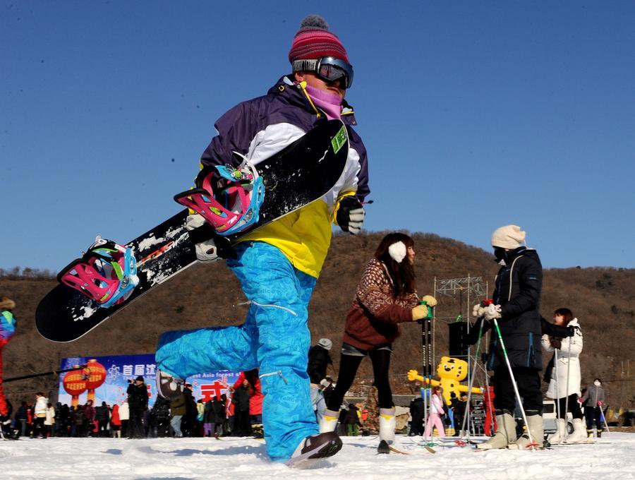 A contestant competes during a local snowboarding competition held at Guaipo ski resort in Shenyang, northeast China's Liaoning Province, Feb. 26, 2012. (Xinhua)A citizen is about to go snowboarding at Dongbeiya International Ski in Shenyang, northeast China's Liaoning Province, Dec. 16, 2009. (Xinhua/Li Gang) ■