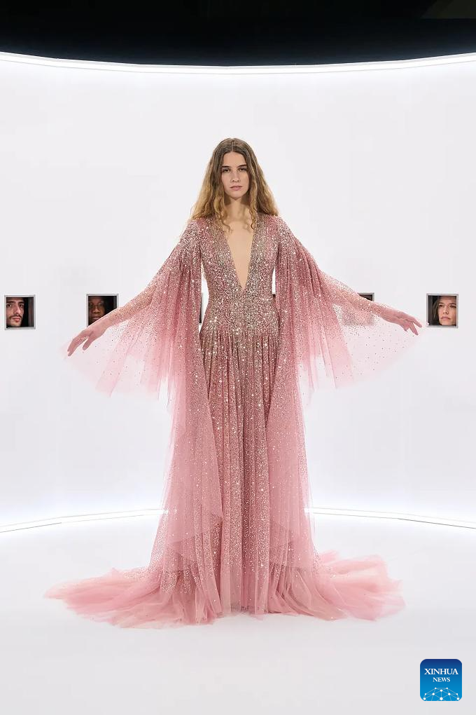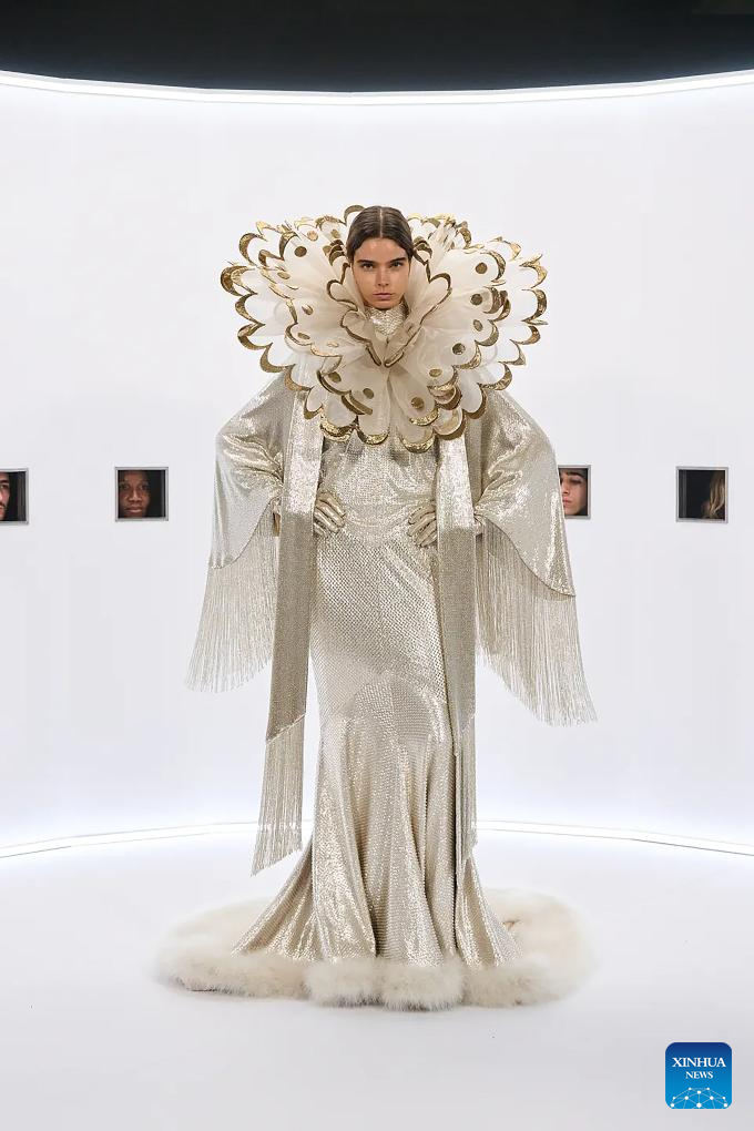 A model presents a creation by Alessandro Michele for Valentino during the Haute Couture Week Spring/Summer 2026 in Paris, France, on Jan. 28, 2026. (MeetEurope/Handout via Xinhua)