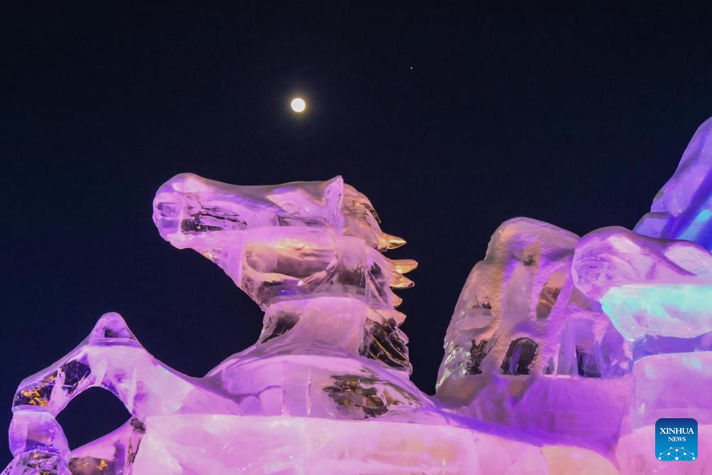 This photo taken on Jan. 31, 2026 shows a conjunction of Jupiter and the waxing gibbous moon over the sky of Qiqihar City, northeast China's Heilongjiang Province. A conjunction of Jupiter and the waxing gibbous moon appeared over the sky on Saturday. (Photo by Wang Yonggang/Xinhua)