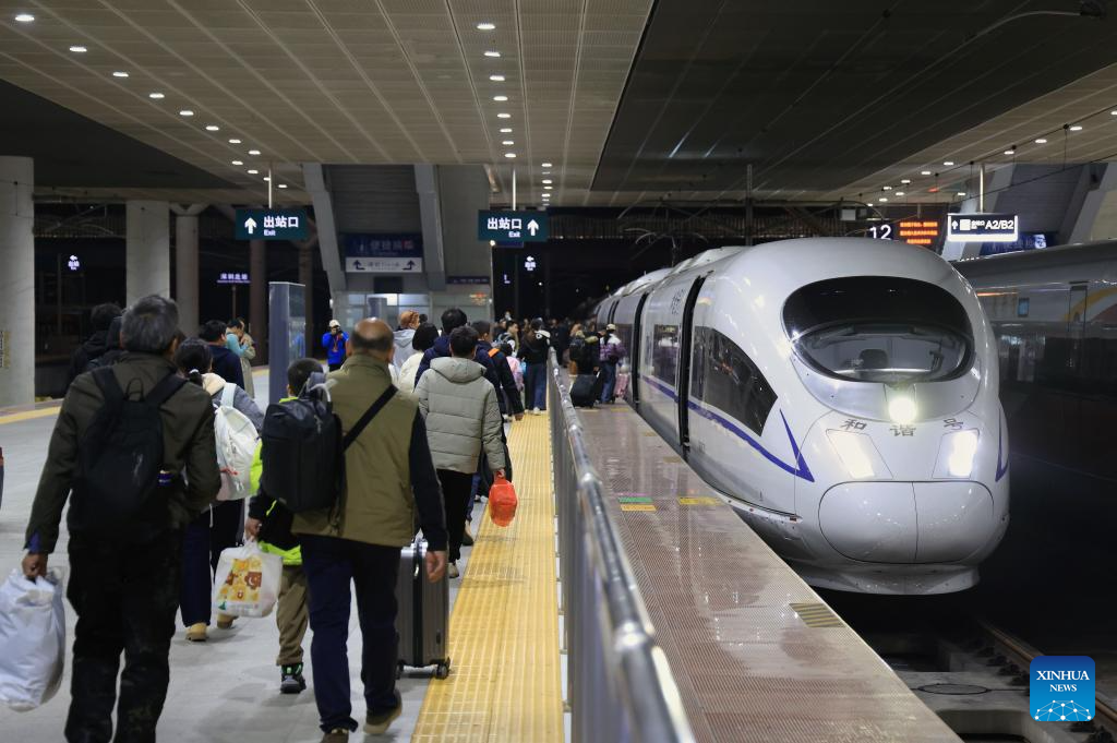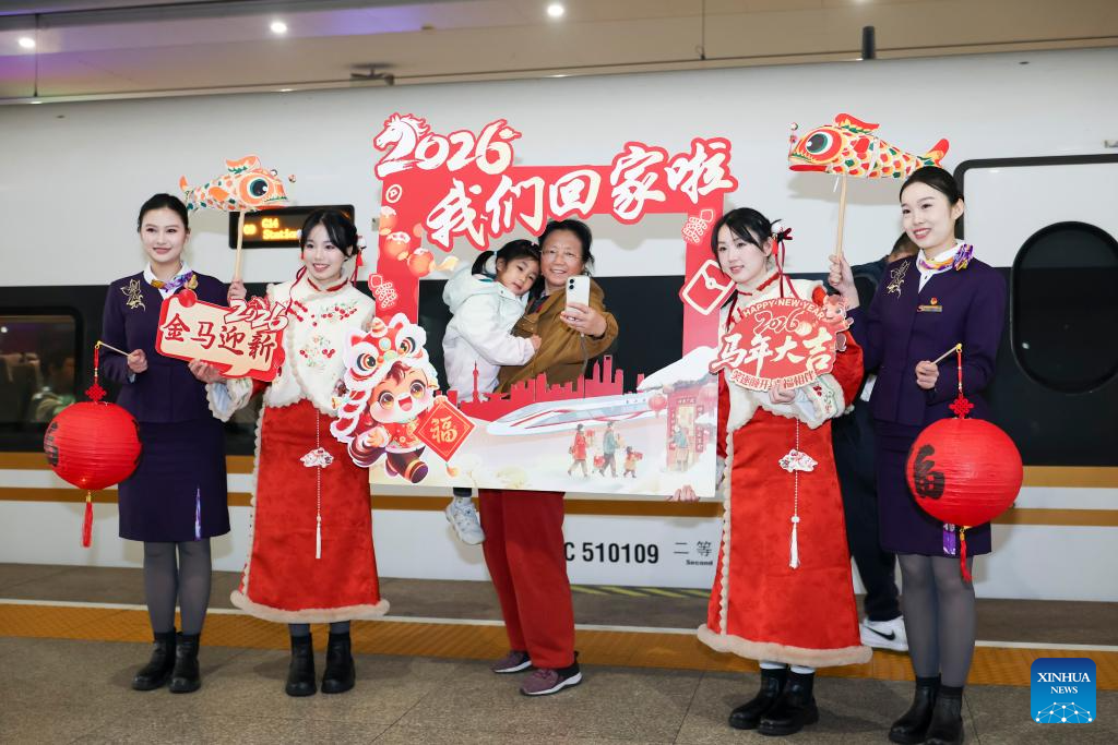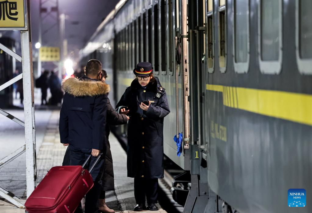 BEIJING, Feb. 2 (Xinhua) -- At 12:40 a.m. Monday, train K4069 pulled out of Beijing West Railway Station, becoming the first passenger train to depart from Beijing as part of the 2026 Spring Festival travel rush. On it were travelers either heading home or setting out on leisure travel, as the country's annual tale of movement and reunion began to unfold.