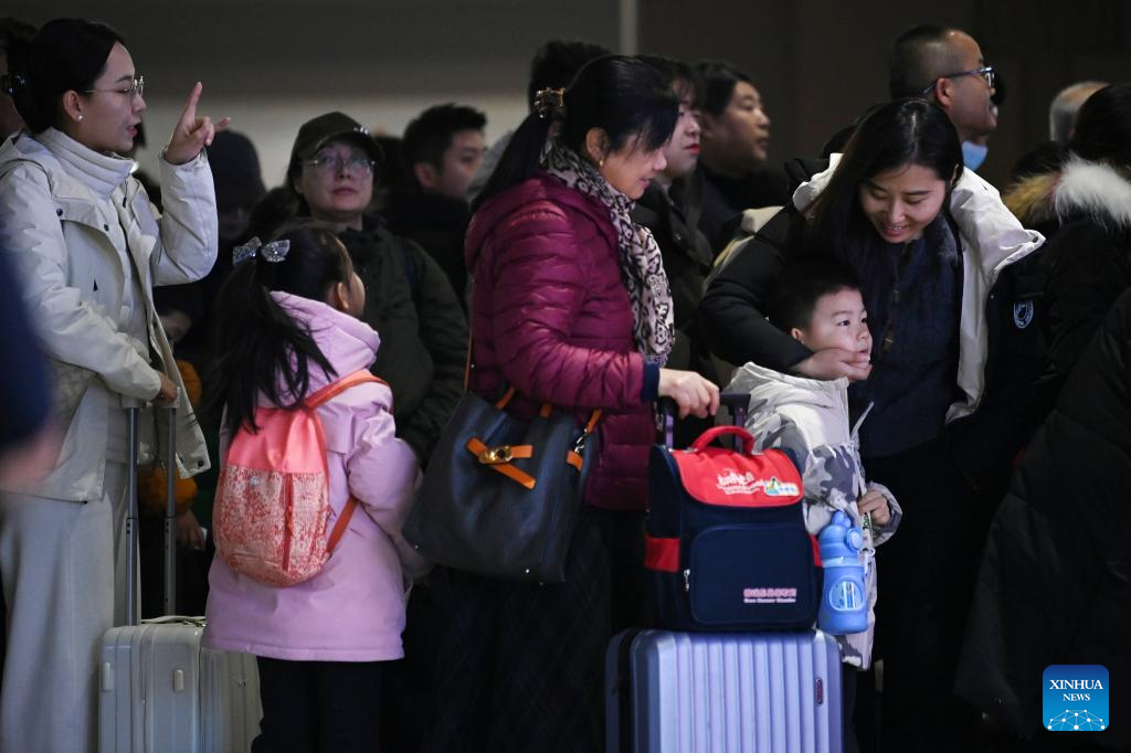 Passengers are seen at Beijing West Railway Station in Beijing, capital of China, Feb. 2, 2026.