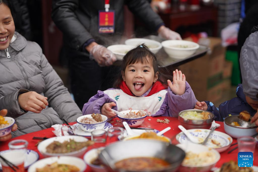 Villagers enjoy a banquet held during the Spring Festival gala in Shenshan Village, Jinggangshan City of east China's Jiangxi Province, Feb. 1, 2026. With the Spring Festival drawing near, Shenshan Village in Jinggangshan City held a Spring Festival gala that invited residents from seven nearby counties in east China's Jiangxi and central China's Hunan provinces to participate. (Xinhua/Zhou Mi)