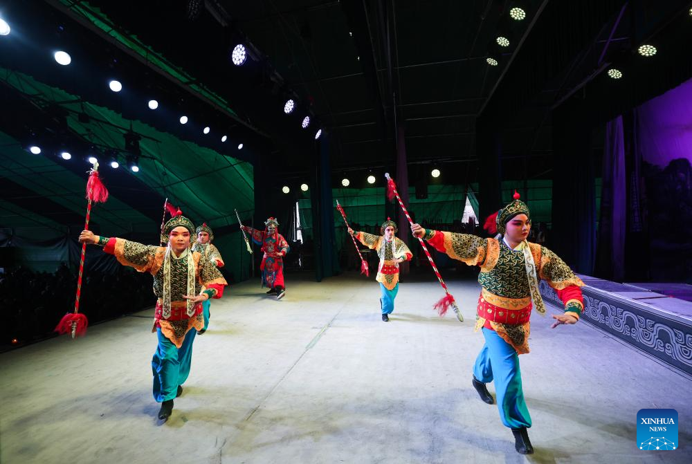 Artists stage a Wuju Opera show in Meixia Village, Jinyun County of Lishui City, east China's Zhejiang Province, Jan. 29, 2026.