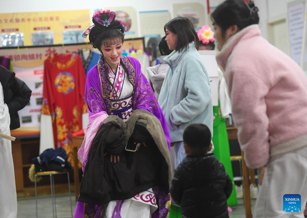 Artists prepare to perform Wuju Opera in Wucun Village, Wucheng District of Jinhua City, east China's Zhejiang Province, Jan. 27, 2026.