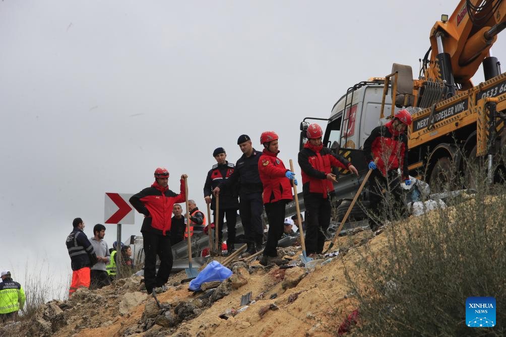 Rescuers work at the site of a bus crash in southern Türkiye's Antalya province, Feb. 1, 2026. (Mustafa Kaya/Handout via Xinhua)