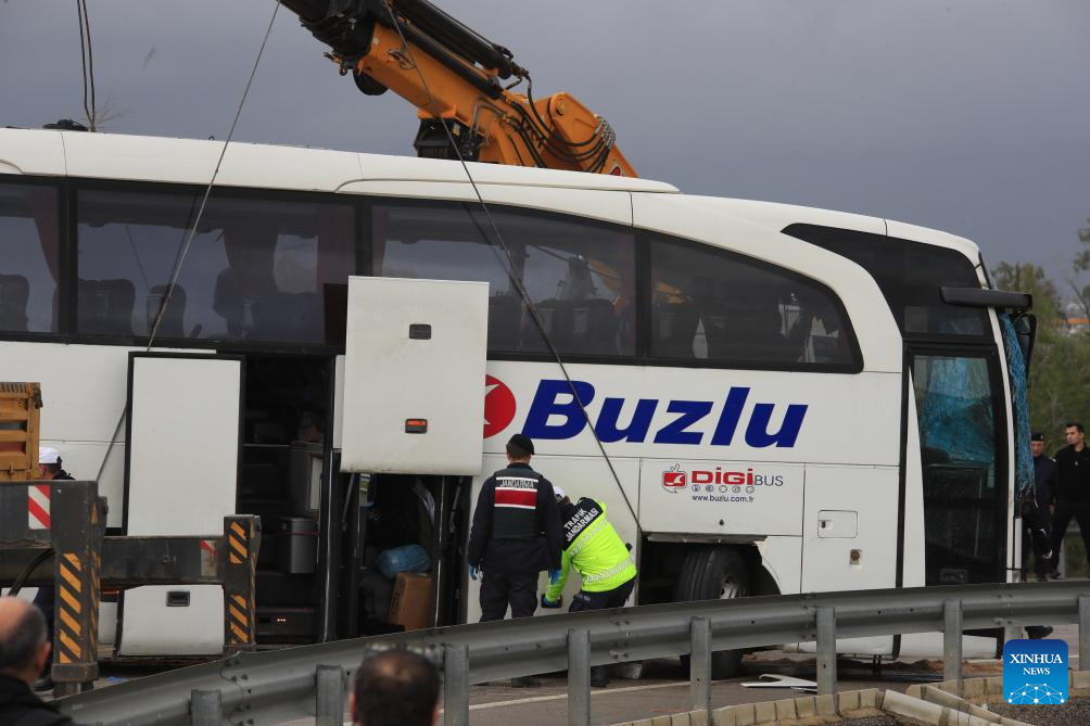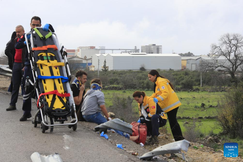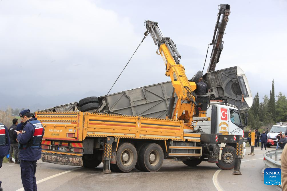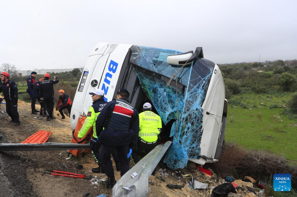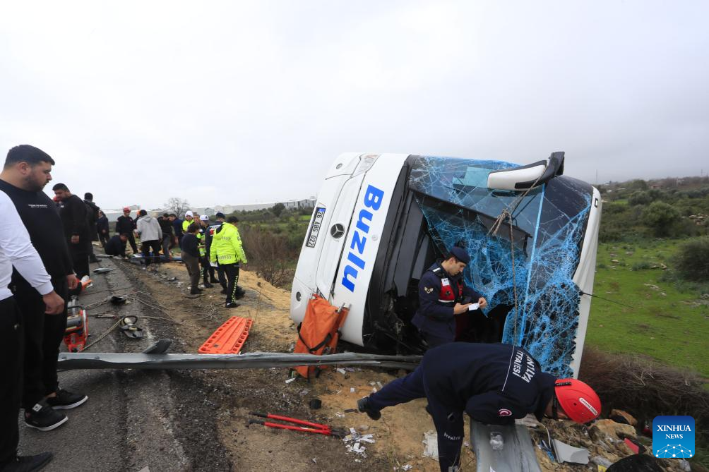 ANKARA, Feb. 1 (Xinhua) -- Eight people were killed and 26 others injured when a passenger bus travelling in southern Türkiye's Antalya province veered off the road and overturned into a ditch on Sunday, local broadcaster NTV reported.