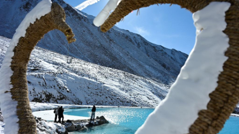 Snow-covered Mt. Gangshika in China's Qinghai attracts tourists in winter