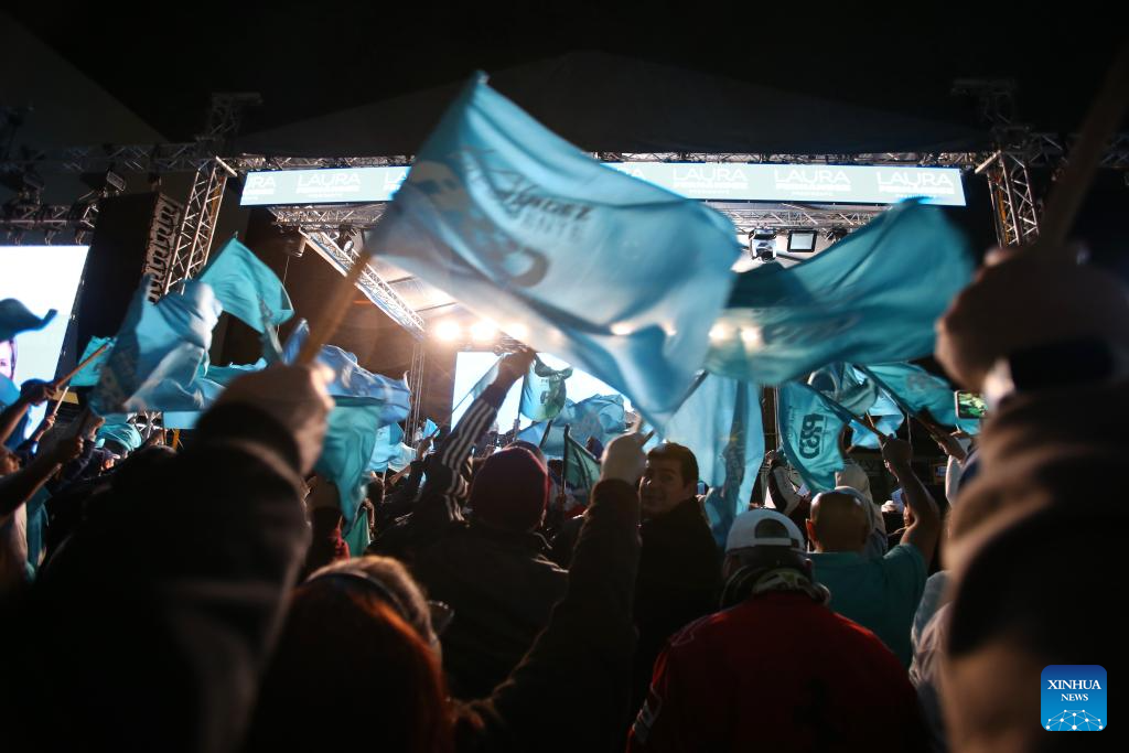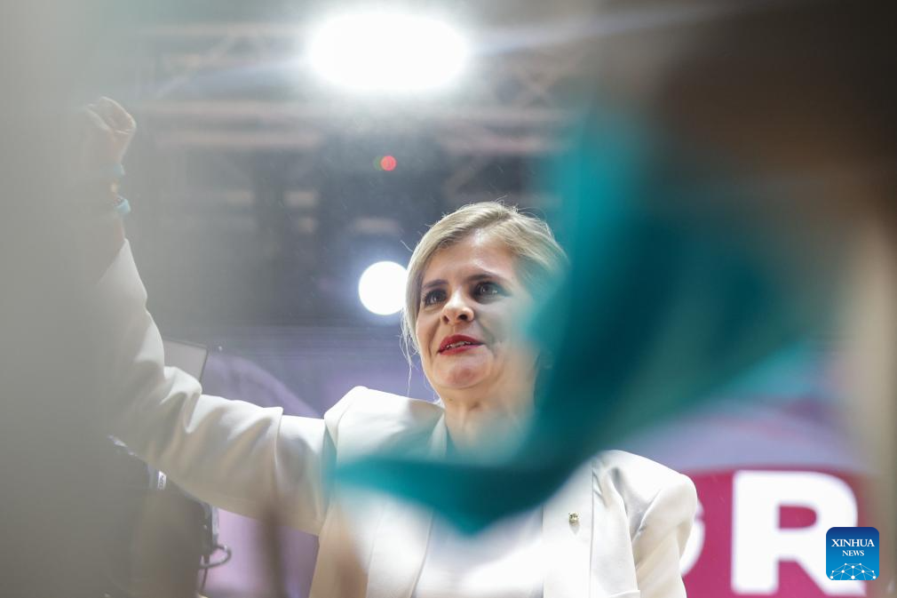 Laura Fernandez, the Sovereign People Party candidate, celebrated on Sunday her victory of Costa Rica's presidential election alongside supporters at a hotel in downtown San Jose. (Photo by Francisco Canedo/Xinhua)