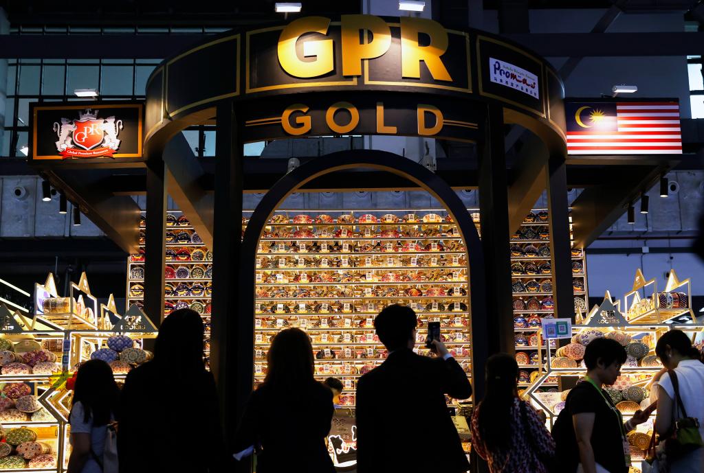 4月13日,参观者在第六届消博会主会场品鉴沉香产品。