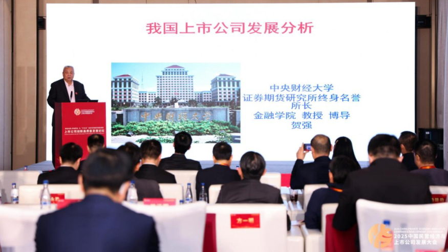 新华网泉州12月24日电(刘默涵)2025中国民营经济与上市公司发展大会分论坛——“上市公司创新高质量发展论坛”12月24日在福建晋江举行。中央财经大学证券期货研究所终身名誉所长、金融学院教授贺强在主旨演讲中表示,中国的上市公司已成为发展新质生产力的重要力量。