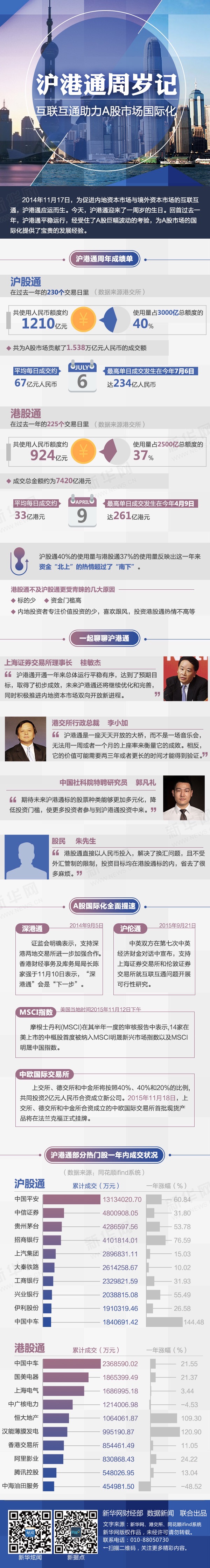 ????過去的一年,滬港通取得了從無到有的突破,內(nèi)地股市首次向全球資金直接開放,而內(nèi)地的投資者也開始全球配置資產(chǎn)。正如港交所行政總裁李小加所述,“滬港通在過去一年中運作平穩(wěn)、交易結(jié)算機制不斷完善?!?/p>