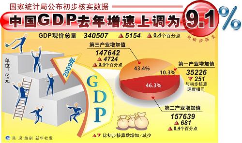 中國GDP去年增速上調(diào)為9.1%