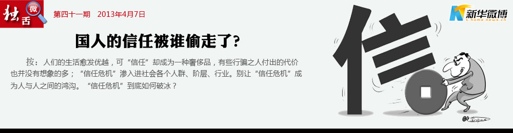 當“造假”成為“理所當然” 誰偷走了中國人的信任?一個段子說是在如今中國,賣包子的不吃自己做的包子,種菜不吃自己種的菜,賣藥的不敢吃自己生產(chǎn)的藥,賣奶粉則從不吃國產(chǎn)的奶粉。當造假作假、坑蒙拐騙成一種風(fēng)氣,甚至成一種理所當然時尚,每個人能做的就只剩兩件事了:一個是只信自己,另一個是絕不信別人。
