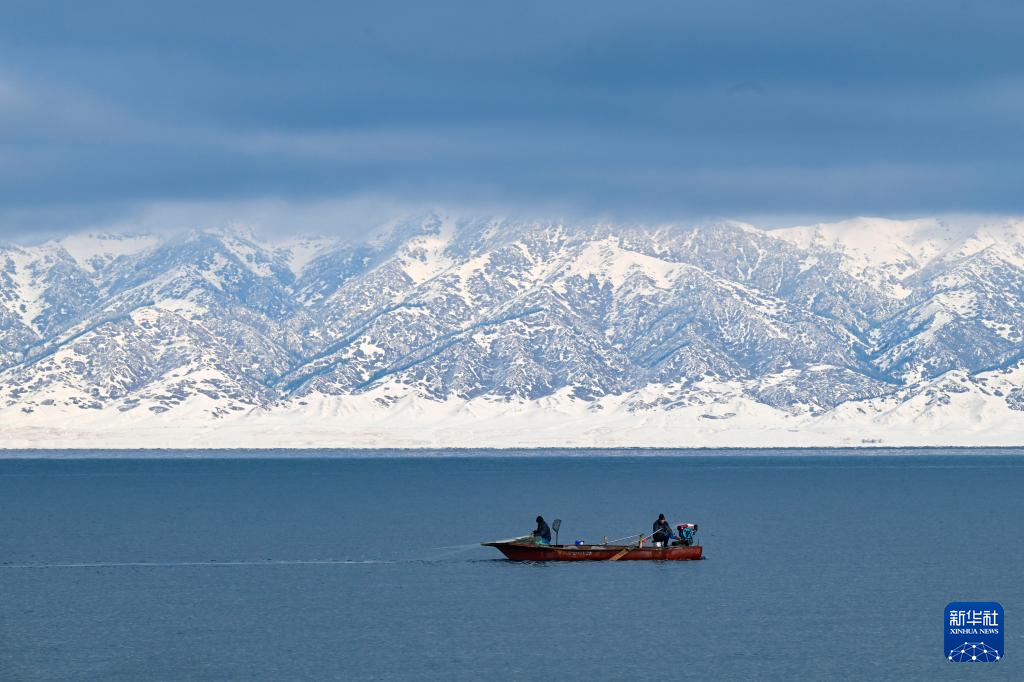 12月16日拍摄的赛里木湖和雪山(无人机照片)。