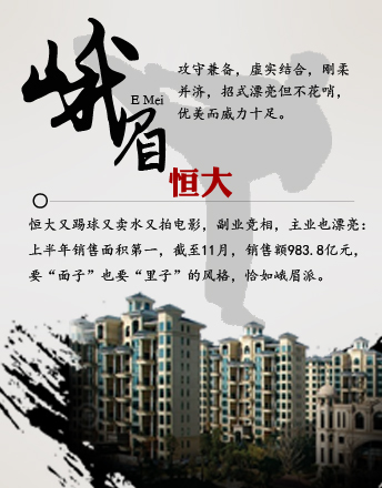 恒大 峨眉派 峨眉派攻守兼?zhèn)?,虛?shí)結(jié)合,剛?cè)岵?jì),招式漂亮但不花哨。 恒大既搞副業(yè),又攻主業(yè),樣樣風(fēng)生水起。年度銷售額新入圍千億俱樂(lè)部。要面子也要里子的風(fēng)格,恰如峨眉派。