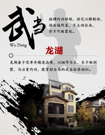 龍湖 武當(dāng)派 武當(dāng)強(qiáng)調(diào)內(nèi)功修練,以靜制動(dòng),一般不主動(dòng)進(jìn)攻,但亦不可輕易侵犯。 龍湖出手拿地都經(jīng)深思,經(jīng)營(yíng)風(fēng)格沉穩(wěn)凌厲,重細(xì)節(jié)品質(zhì)。與注重內(nèi)功,看似被動(dòng)實(shí)能縱觀全局的武當(dāng)派很像。