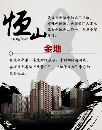 金地 恒山派 原是五岳劍派中的名門正派,有佛學(xué)淵源。后差點(diǎn)全軍覆沒(méi)。 金地過(guò)去為業(yè)界四大天王之一。但其今年第三季度財(cái)報(bào)顯示:凈利潤(rùn)降逾兩成,各項(xiàng)目屢陷質(zhì)量門,天王冠冕也不保。