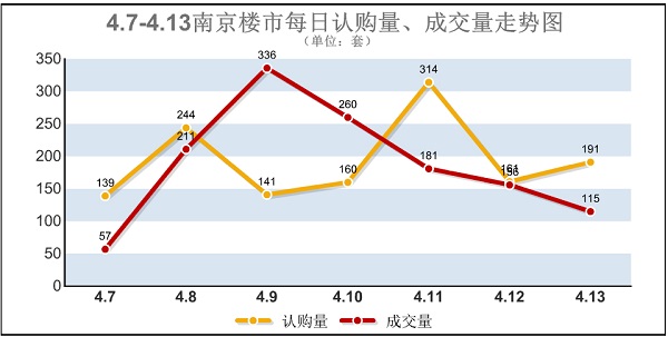 數(shù)據(jù)顯示,“銀四”第二周(4月7日-4月13日),南京樓市迎來11盤、近1900套新增商品房源的供應(yīng),庫存量也直線躥升至3.6萬套水平。銷售方面,截止4月13日晚間10點(diǎn)整,網(wǎng)上房地產(chǎn)數(shù)據(jù)顯示,上周南京新增商品房共計(jì)認(rèn)購1350套,成交1316套,環(huán)比上一個(gè)統(tǒng)計(jì)周期分別上漲了1.7%、11.7%。日均認(rèn)購193套、成交188套。業(yè)內(nèi)人士據(jù)此推斷,市場(chǎng)已進(jìn)入年度強(qiáng)銷期,且由于青奧會(huì)停工的影響,銷售強(qiáng)度將不斷提高。…[詳細(xì)]