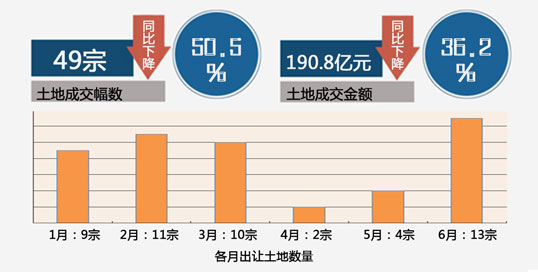 2014年上半年落幕,武漢土地市場(chǎng)的成績(jī)?yōu)椋撼鲎屚恋?9宗,總成交金額為190.8億元。[詳情點(diǎn)擊]