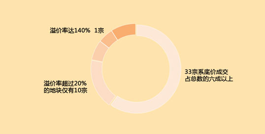 武漢上半年出讓的地塊中,有33宗系底價(jià)成交,占總數(shù)的六成以上;溢價(jià)率超過(guò)20%的地塊僅有10宗,最高的為沌口的一宗地塊,溢價(jià)率達(dá)140%。而進(jìn)入4月以后,歷次土拍無(wú)一不是"火速底價(jià)成交"。[詳情點(diǎn)擊]