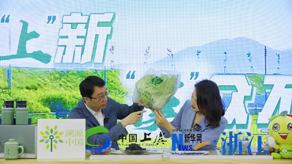 現(xiàn)場(chǎng),紹興市上虞區(qū)副區(qū)長(zhǎng)周尊隆用關(guān)鍵詞推介上虞:“最早建縣”“曹娥”“祝英臺(tái)”“產(chǎn)糧大縣”“四季仙果”“孝德文化之鄉(xiāng)”“綜合實(shí)力百?gòu)?qiáng)區(qū)”……一個(gè)鐘靈毓秀、朝氣蓬勃的上虞躍然話間。主持人品嘗上虞:本地大米、覺農(nóng)翠茗茶、高山櫻桃、桑葚、活體蔬菜……一個(gè)民安物阜、有滋有味的上虞展現(xiàn)舌尖。場(chǎng)外主播則探秘上虞:90后新農(nóng)人、科技大棚、無土栽培……一個(gè)創(chuàng)新智慧、數(shù)字興城的上虞閃爍田間。