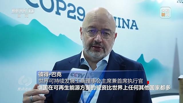 世界可持续发展工商理事会主席兼首席执行官彼得·巴克:在过去7年里,中国在可再生能源方面的投资比世界上任何其他国家都多,因此,连续7年,中国是可再生能源的头号投资者。