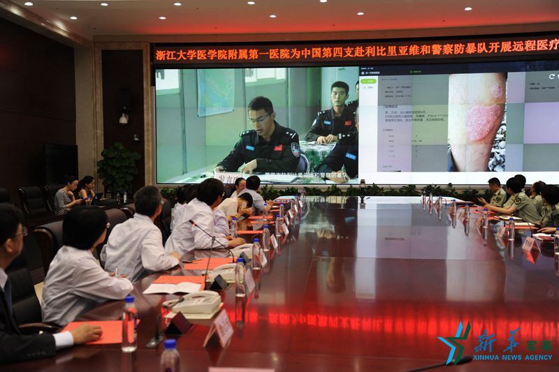 ????由中國第四支駐利比里亞維和警察防暴隊、浙江邊防總隊和浙江大學(xué)醫(yī)學(xué)院附屬第一醫(yī)院共同發(fā)起的“警民遠(yuǎn)程醫(yī)療協(xié)作”日前啟動。6位醫(yī)療專家通過遠(yuǎn)程視頻系統(tǒng),為遠(yuǎn)在利比里亞的患病隊員進(jìn)行會診。