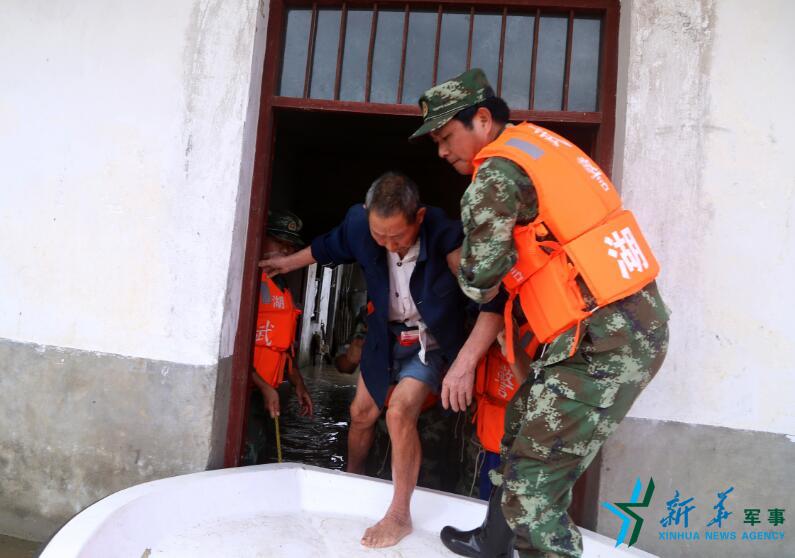 在荊門石牌鎮(zhèn)胡沖村,支隊(duì)政治委員肖家宏耐心勸說(shuō)不愿離家的受災(zāi)群眾。