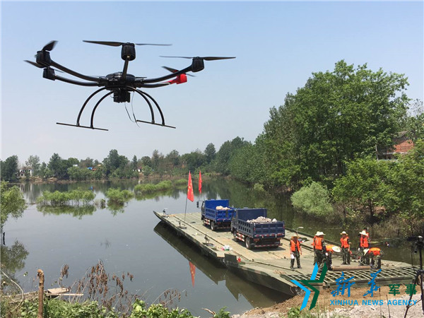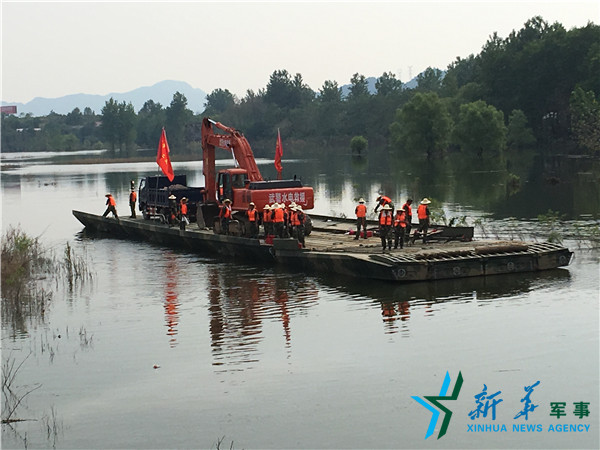 ????尤其在此次搶險(xiǎn)中,武警水電部隊(duì)合理使用尖端裝備,為快速完成防汛救災(zāi)提供了有力保證。武警水電部隊(duì)緊急調(diào)運(yùn)了新型抗洪重器——Q80動力浮橋投入萬子圩封堵現(xiàn)場,它同時(shí)能運(yùn)送2臺大型挖掘機(jī)或3臺自卸車,一次運(yùn)送20方石料,大幅縮短封堵時(shí)間。完成東至縣東湖圩潰口封堵任務(wù)后,為盡快幫助災(zāi)區(qū)群眾重建家園,武警水電部隊(duì)又緊急協(xié)調(diào)投入2臺“龍吸水”搶險(xiǎn)排水車,每小時(shí)可抽排洪水4500方,對完成剩余潰口封堵任務(wù)發(fā)揮了巨大作用。
