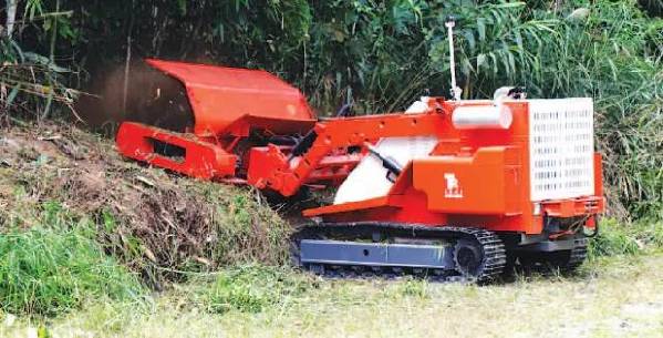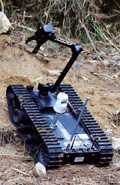 雷場清障車,是通過遙控操作的。具有在坡度小于40°的山地進行清障排爆作業(yè)的功能。該車具有較強的爬坡能力,操作手可以在1000米范圍內(nèi)實施無線遙控控制,完成掃除淺層防步兵地雷、清除灌木叢和鏟運樹木等任務,以電錘擊爆地雷手雷等未爆炸物品,這期間即使產(chǎn)生爆破碎片或者沖擊波都不會對操作員構(gòu)成危險。