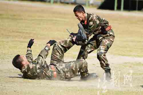 ????“科學(xué)的說法就是運(yùn)用杠桿原理、打擊要害部位,通俗說法就是四兩撥千斤!”身高不過168cm、體重不足60公斤的第四年兵左俊笑起來(lái)還是張娃娃臉,但已經(jīng)歷了20多次緝毒、緝私實(shí)戰(zhàn)考驗(yàn),特別是在2015年的一次破門緝毒行動(dòng)中,他徒手抓捕了一名身高185cm以上、從某國(guó)特種部隊(duì)退伍的毒販。他介紹,當(dāng)時(shí)使用的正是這套特種格斗技能。(廖鍵)