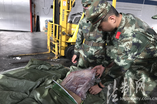 廣東邊防官兵聯(lián)合東莞多部門搗毀走私凍品貯存點