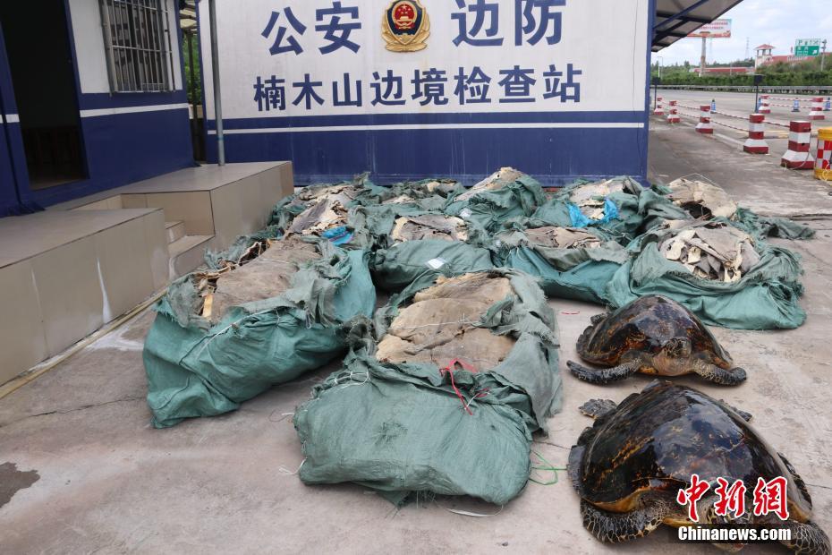 ????6月27日,廣西防城港邊防支隊楠木山邊境檢查站執(zhí)勤官兵在對一輛重型廂式貨車例行檢查時,查獲涉嫌非法運輸玳瑁標(biāo)本2只、鯊魚皮11袋。這兩只玳瑁標(biāo)本重量共達到40多公斤,而11袋鯊魚皮重約1噸。據(jù)悉,玳瑁是國家二級重點保護野生動物,已被列入《世界自然保護聯(lián)盟》(IUCN)2012年瀕危物種紅色名錄。(張振國)